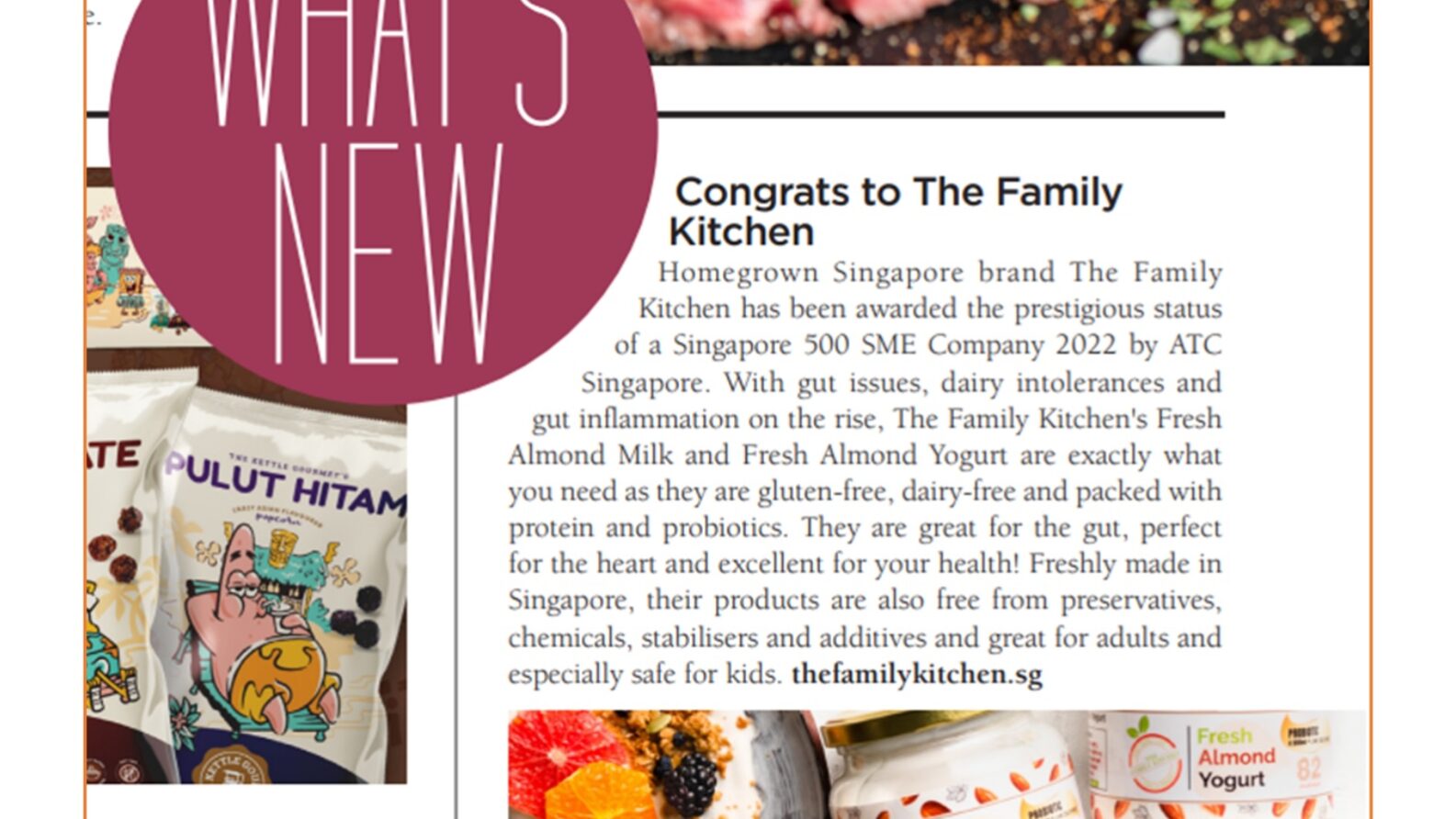Jan312024Spotlight Read more in the Magazine coverage hereCategory: SpotlightJanuary 31, 2024 Share this article Share on FacebookShare on Facebook Share on XShare on X Pin itShare on Pinterest Share on LinkedInShare on LinkedIn Share on WhatsAppShare on WhatsApp Post navigationPreviousPrevious post:The Family Kitchen becomes a proud recipient of ATC’s Singapore SME 500 AwardNextNext post:The Family Kitchen gets featured again in the Expat Living magazine [March 2023 Issue]Related PostsThe Family Kitchen gets featured again in the Expat Living magazine [March 2023 Issue]February 16, 2024The Family Kitchen becomes a proud recipient of ATC’s Singapore SME 500 AwardFebruary 8, 2023Spotlight: We’re Featured in Vanilla Luxury’s List of Homegrown Healthy Food Brands in SingaporeJune 11, 2021
